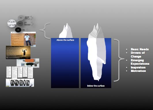 Knowing all you can about your customer is the start to creating a product that sells itself. We work from an on-the-surface consumer profile and create deeper insight and clear application via our own "iceberg muse."